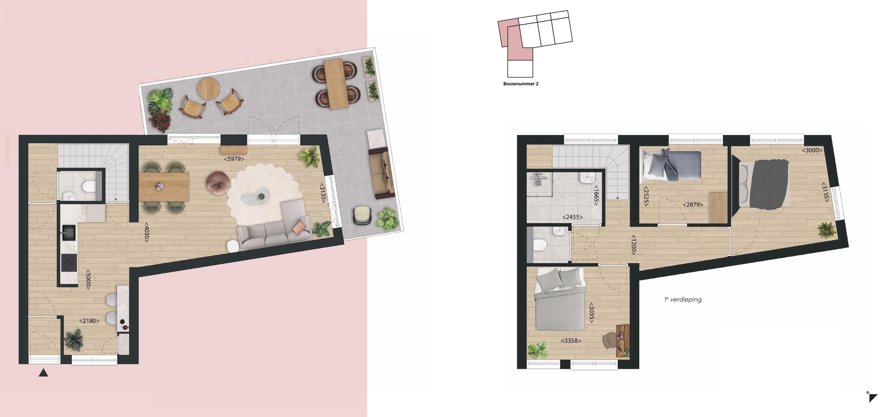 - Grootste maisonnette met circa 93 m² woonoppervlakte.